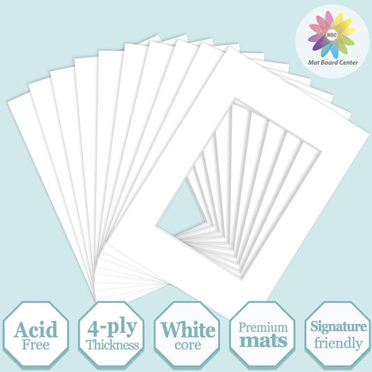 MBC Mat Board Center, 10 Pack 8x10 for 7x9 White Picture Mats Frame Mattes, Bevel Cut, Acid Free, 4-ply Thickness