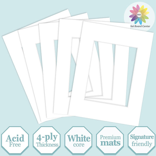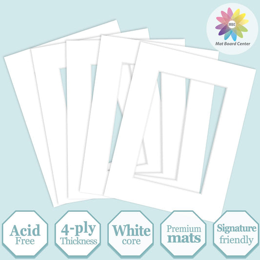 MBC Mat Board Center, 5 Pack 8x10 for 7x9 White Picture Mats Frame Mattes, Bevel Cut, Acid Free, 4-ply Thickness