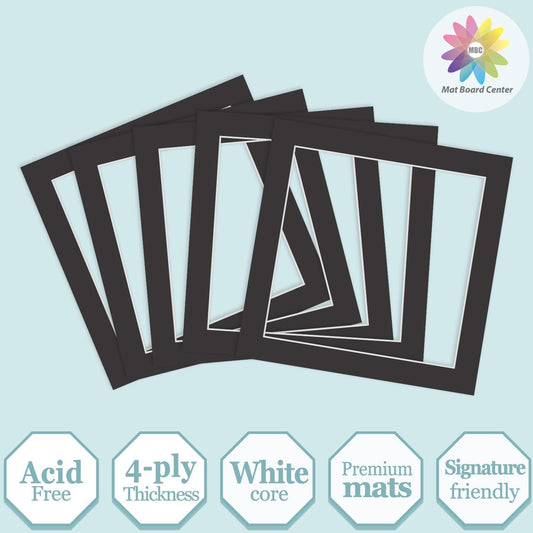 MBC MAT BOARD CENTER, 5 Pack 8x10 for 7x9 Black Picture Mats Frame Mattes, Bevel Cut, Acid Free, 4-ply Thickness
