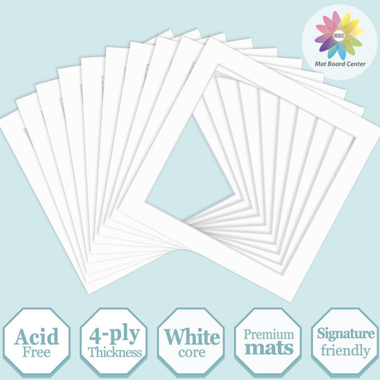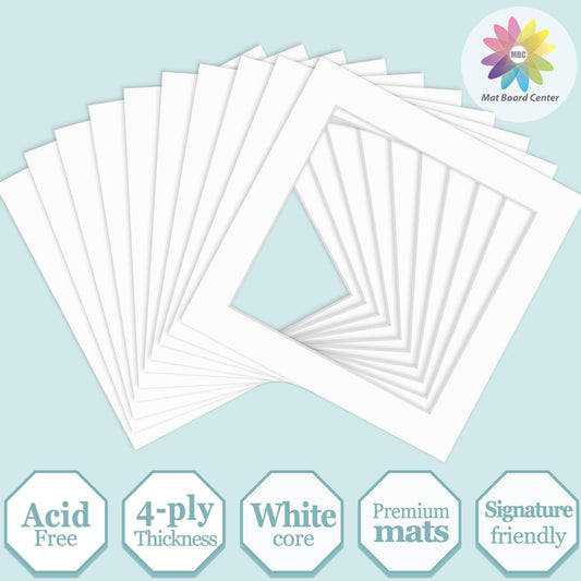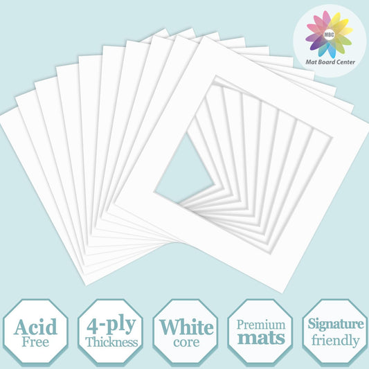 MBC Mat Board Center, 10 Pack 8x8 for 6x6 White Picture Mats Frame Mattes, Bevel Cut, Acid Free, 4-ply Thickness