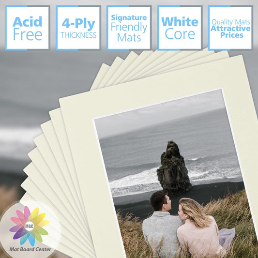 Mat Board Center, Pack of 10, 8x10 for 5x7 Ivory Turret Color Mats - Bevel Cut, Acid Free, 4-ply Thickness, White Core - for Pictures, Photos, Framing