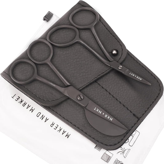 Small Embroidery 4.5 Inch Scissors Set of 2 Kit - Mini Double Bend Offset Duckbill and Double Bend Long Applique Needlepoint Blade with Pouch Sleeve (Black)