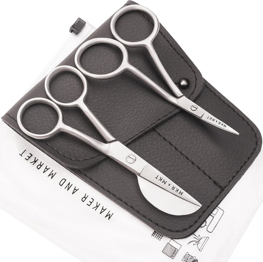 Beaditive Sewing and Embroidery Scissors Set (2 Pc.) Curved and Straight, Sharp, Stainless-Steel Design | Precision Tips, Ergonomic Rubber Handle Grip | Small, Compact DIY Use (1 Curved, 1 Straight)