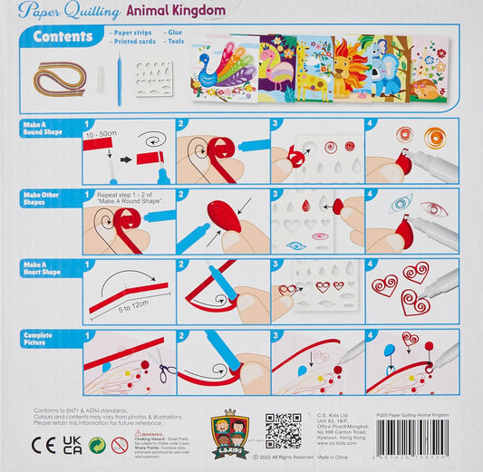 C.S. Kids DIY Paper Quilling Arts & Crafts Gifts – Animal Kingdom| 3D Paper Quilling Design Kits for Kids, Make Your Own Paper Art (Paper Strips & Tools Included), Multicolor,PQ05
