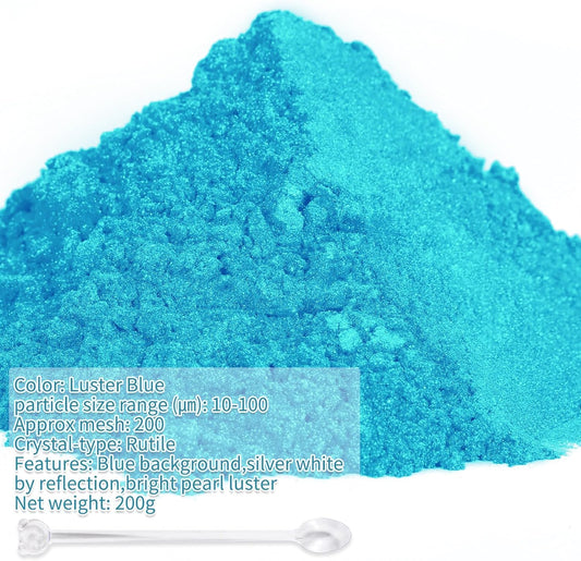 Mica Powder,7.05OZ(200g),Luster Blue Mica Powder Pigment for Epoxy Resin,Lip Gloss,Car Paint,Dye,Soap Making,Nail Polish,Epoxy Resin,Candle Making,Bath Bombs