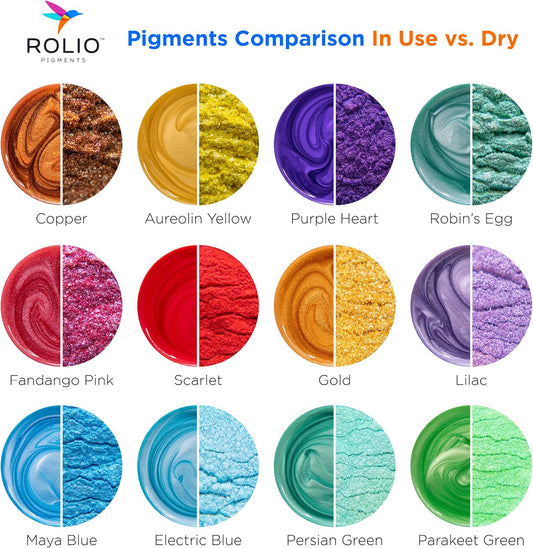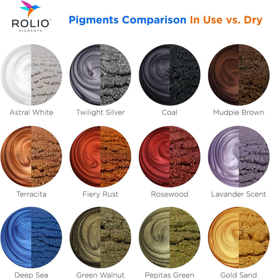 Rolio Mica Powder Pearlescent Color Pigment - Art Set for Resin Epoxy - for Soap Making, Nail Polish, Lip Gloss Set, Eye Shadow, Bath Bomb, Slime & Candle - 10g, 12 Jars - (Earth Colors)