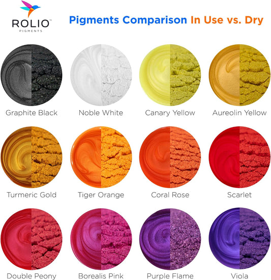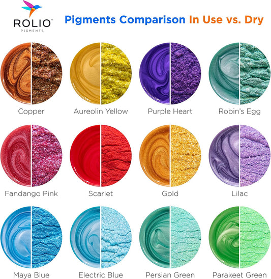 Rolio Mica Powder Pearlescent Color Pigment - 12 Jars for Resin Epoxy, Soap Making, Nail Polish, Lip Gloss, Eye Shadow, Bath Bomb, Slime & Candle - 10g Each (Tropical Sunset)