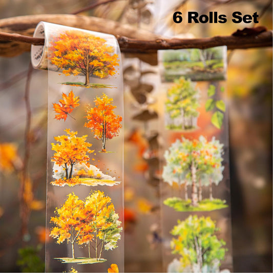 6PCS Trees and Forest PET Tape Set, Nature Scenery Adhesive Tapes for Journaling, Scrapbooking, and DIY Crafts, with Decorative Clip