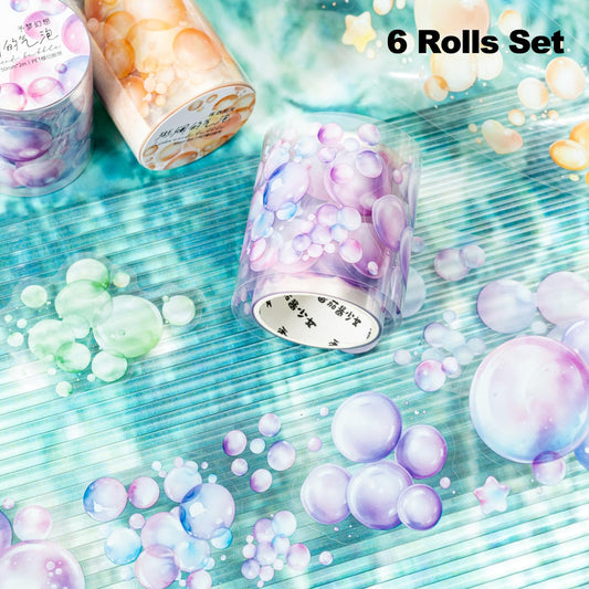 6 Rolls Bubbles PET Tape Set, Pre-Cut Colorful Stickers for Journaling, Scrapbooking, and DIY Crafts, with Decorative Clip