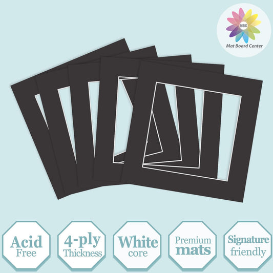 MBC Mat Board Center, 5 Pack 8x8 for 6x6 Black Picture Mats Frame Mattes, Bevel Cut, Acid Free, 4-ply Thickness