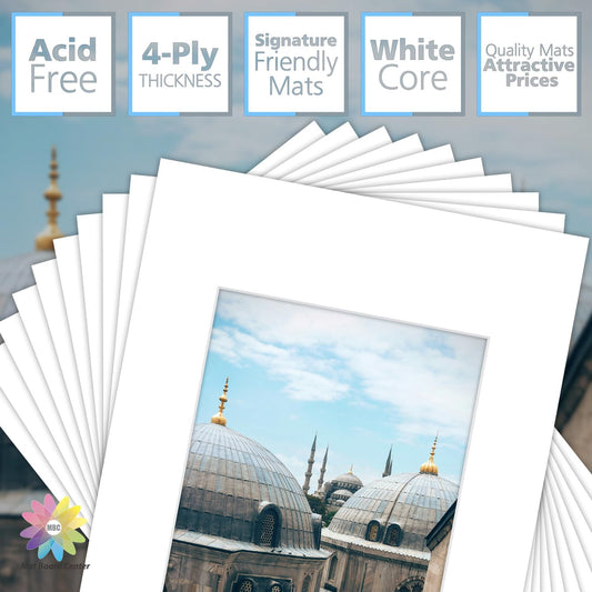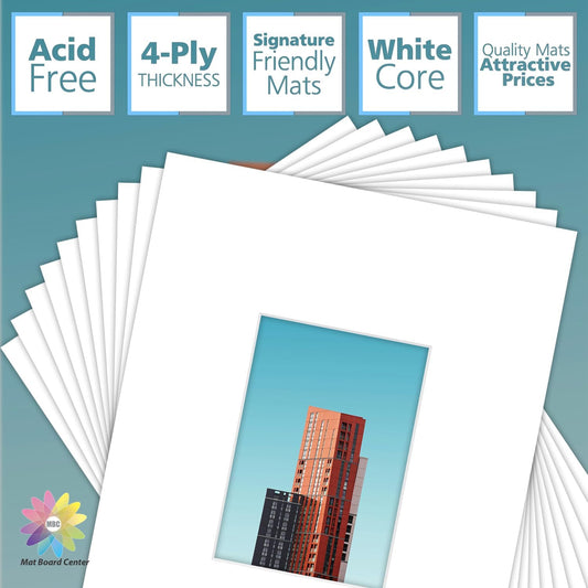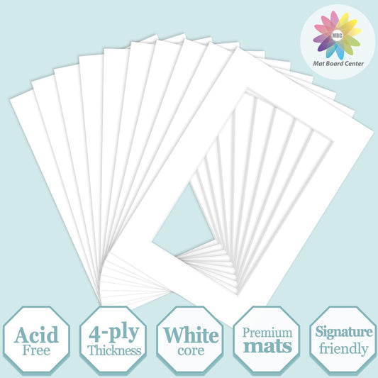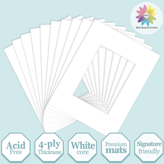 MBC MAT BOARD CENTER, 10 Pack 11X14 for 9X12 White Picture Mats Frame Mattes, Bevel Cut, Acid Free, 4-Ply Thickness