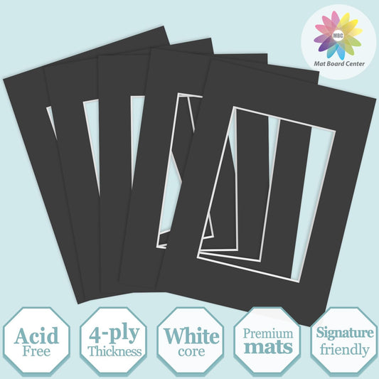 MBC Mat Board Center, 5 Pack 11X14 for 8X12 Black Picture Mats Frame Mattes, Bevel Cut, Acid Free, 4-Ply Thickness
