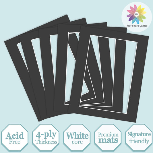 MBC MAT BOARD CENTER, 5 Pack 16x20 for 8x10 Black Picture Mats Frame Mattes, Bevel Cut, Acid Free, 4-ply Thickness