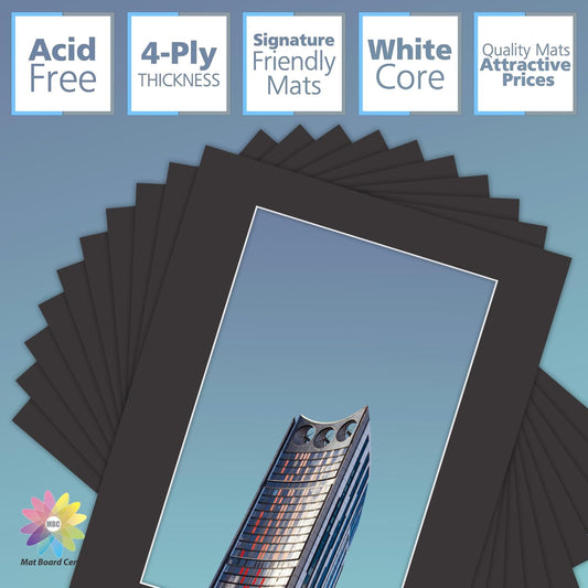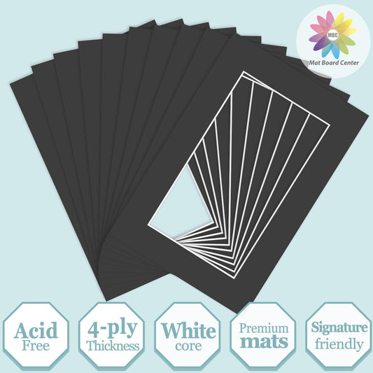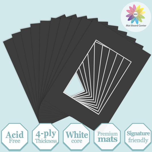 MBC MAT BOARD CENTER, 10 Pack 8.5X11 for 6X8 Black Picture Mats Frame Mattes, Bevel Cut, Acid Free, 4-Ply Thickness