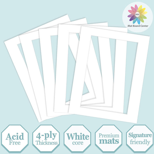 MBC Mat Board Center, 5 Pack 8.5X11 for 6X8 White Picture Mats Frame Mattes, Bevel Cut, Acid Free, 4-Ply Thickness