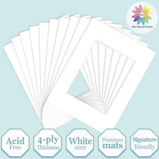 MBC Mat Board Center, 10 Pack 8.5X11 for 5X7 White Picture Mats Frame Mattes, Bevel Cut, Acid Free, 4-Ply Thickness