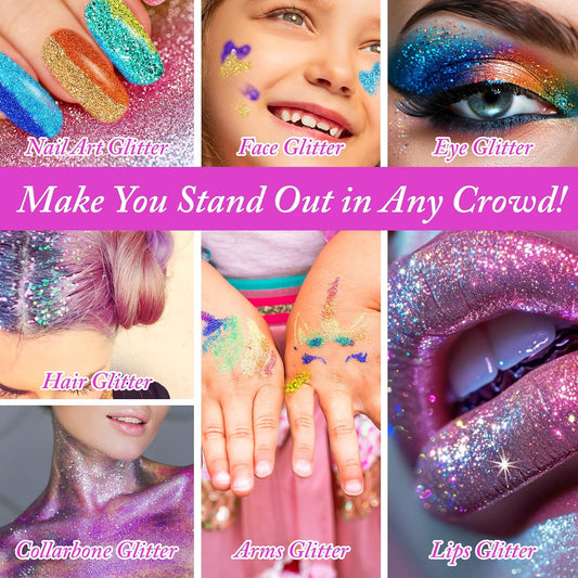 Glitter, 48 Colors Fine Glitters for Resin, Craft Glitter Bulk for Resin Accessories DIY Slime Candle, Extra Fine Glitters Powder for Nail Art, Body Hair Face, Christmas Glitters