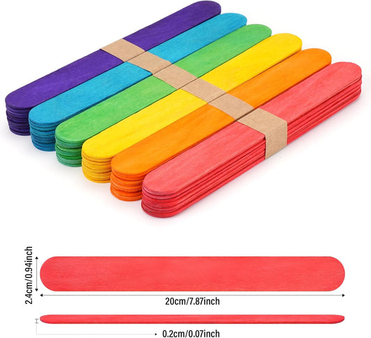 60 Pieces Jumbo Colored Popsicle Sticks, 8 Inch Natural Colored Wooden Craft Sticks, Multi-Purpose Rainbow Ice Cream Sticks for DIY Classroom Crafts, Home Art Projects and Plant Labels