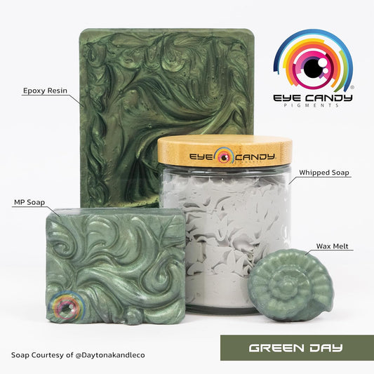Eye Candy Pigments Premium Green Mica Powder - Green Day (50gr) - for Epoxy, Resin, Soap, Paint, Woodworking, Acrylic Pouring, Bath Bombs, Fishing Lures - DIY Arts and Crafts Additive