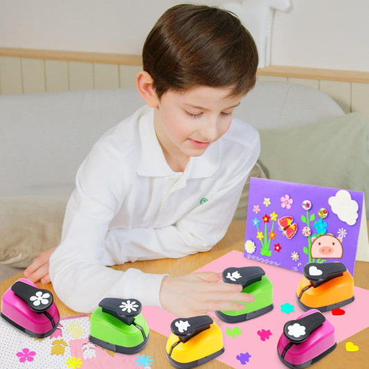 Creative Kids DIY Puncher Craft Set, Paper Hole Punches for Kids, Craft Hole Punch Shapes Set, Shape Cutters for Crafts, Craft Scissors and Hole Punch Set Scrapbook Supplies
