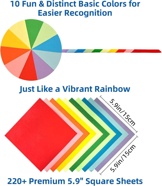 Origami Kit for Kids | 220 Sheets 6x6 Inch Origami Paper in 10 Colors & Child-Friendly Tools | Perfect for Hands-on Creative Art & Craft Projects | Ideal Gift for Ages 5-8 8-12.