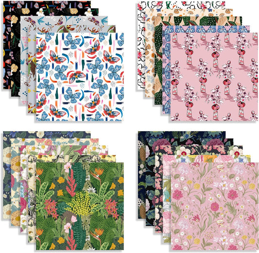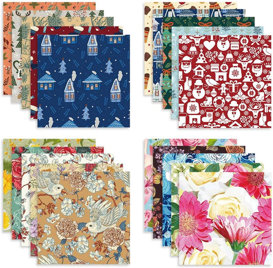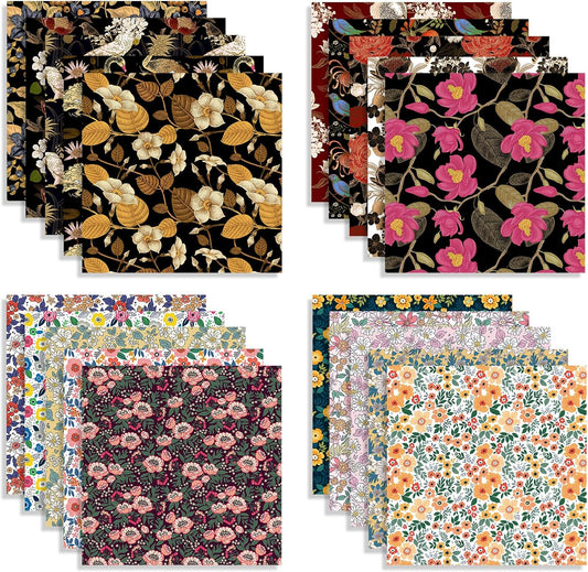 Scrapbook Paper 12x12, Double-Sided Suede Textured Scrapbook Paper Set 24 Sheets/ 24 Designs, Bohemian Patterned Craft Paper for Junk Journals Greeting Cards Album Decoration (Soft Romantic, 12x12 in)