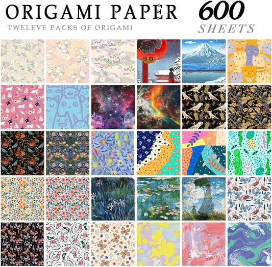 12 Different Packs Full Collection Origami Paper Kit 6 Inch Square Double Sided Color Vivid Colors Creation Easy Fold Paper Set Hand Crafts Paper Arts Creativity.01