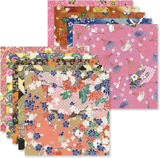Origami Paper Kit 50 Sheets 6 Inch Square Double Sided Color 10 Vivid Sakura Washi Chiyo Colors for Hand Crafts Origami Paper Arts Creativity.Cherry Blossoms