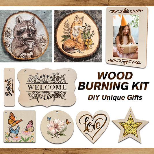 137PCS Wood burning Kit, DIY Creative Tool Set Soldering Woodburning Pen with Adjustable Temperature and Wood Piece for Embossing Carving Tips