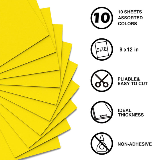 MEARCOOH Foam Sheets Crafts 9x12 Inch 10 Colors 2mm Eva Color Craft Foam Paper for Crafts Project Preschoolers Classroom Scrapbooking DIY Cosplay(10 Sheets)