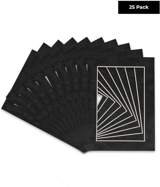 Pack of 25 Acid Free 11x14 Mats Bevel Cut for 8.5x11 Photos - Dark Grey Suede Precut Matboards For Pictures, Photos, Framing - 4-ply Thickness