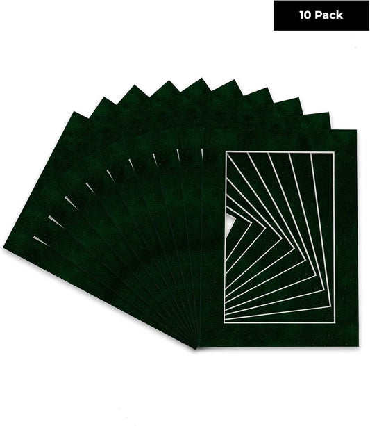 Pack of Ten Acid Free 11x14 Mats Bevel Cut for 8.5x11 Photos - Green Suede Precut Matboards With Backing Boards and Self Seal Photo Mat Bags For Pictures, Photos, Framing - 4-ply Thickness