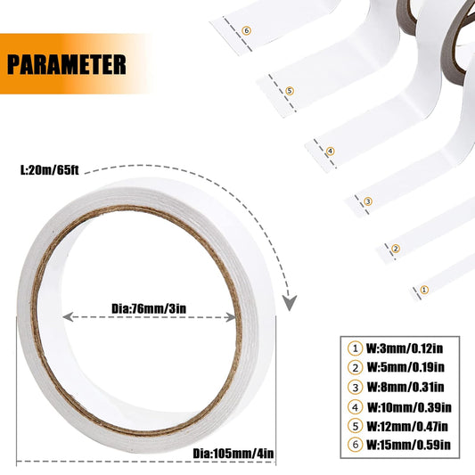 Double Sided Tape for Crafts, Double-Sided Tape for Arts, Scrapbook Supplies, Photography, Gifts Box, Scrapbooking, Card Making, Paper Backing, Tear-by-Hand, 6 Roll Heavy Duty Multi-Size Adhesive Tape