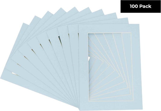 11x14 Mat for 8.5x11 Photo - Precut Baby Blue Picture Matboard for Frames 11 x 14 Inches - Bevel Cut to Display Art 8.5 x 11 Inches - Acid Free Pack of 100 MATS with Backing Boards & Clear Bags