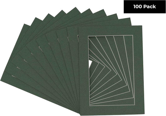 11x14 Mat for 8.5x11 Photo - Precut Hunter Green Picture Matboard for Frames Measuring 11 x 14 Inches - Bevel Cut Matte to Display Art Measuring 8.5 x 11 Inches - Acid Free Pack of 100 MATS