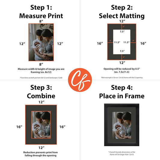 Craig Frames B573 Pre-cut Mat Board for 9x12 Print, 12x16, Graphite Black