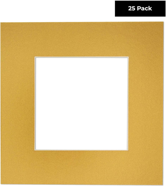 11x14 Mat for 8.5x11 Photo - Precut Metallic Gold Picture Matboard for Frames 11 x 14 Inches - Bevel Cut to Display Art 8.5 x 11 Inches - Acid Free Pack of 25 MATS with Backing Boards & Clear Bags