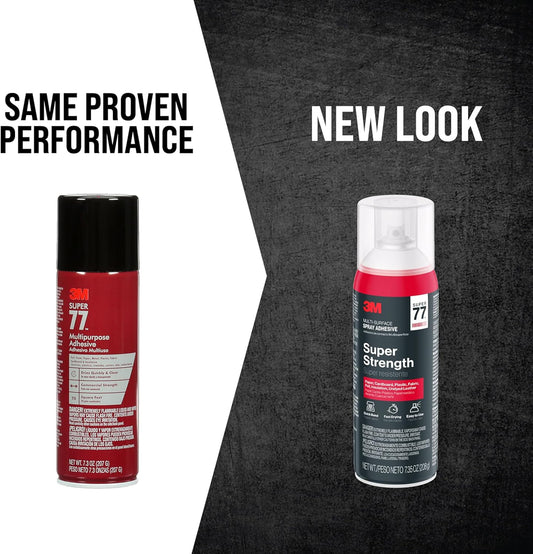 3M Super 77 Multi-Surface Spray Adhesive, 7.35 oz., Low VOC, Quick Bond, Fast Drying, Clear Finish for Foil, Foam, Paper, Metal, Plastic, Fabric, and Cardboard (77-10-NAT)