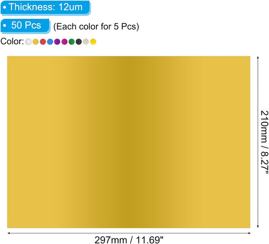PATIKIL 11.7x8.3" Hot Stamping Foil Paper Sheet, 50 Sheets A4 Heat Transfer Hot Stamping Paper Foil for Leather DIY Logo Decor Craft Gift Package Scrapbook Card, 10 Colors