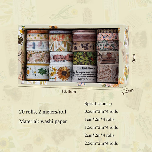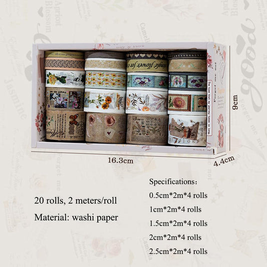 MAFELOE Decorative Vintage Washi Tapes Set 20 Rolls 2 Meters Long, Adhesive Scrapbook Junk Journaling Art Craft Collage Supplies-Forest Dream Series-Light Brown (WT-M4-SLMJ)