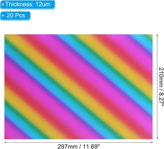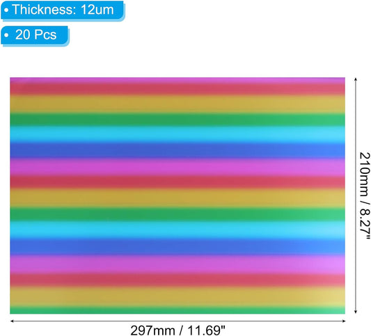 PATIKIL 11.7x8.3" Hot Stamping Foil Paper Sheet, 20 Sheets A4 Heat Transfer Hot Stamping Paper Foil for Leather DIY Logo Decor Craft Gift Package Scrapbook Card, Tilt Colorful