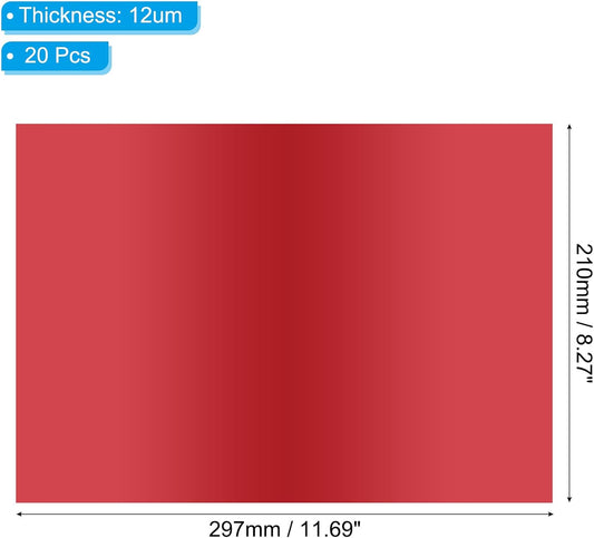 PATIKIL 11.7x8.3" Hot Stamping Foil Paper Sheet, 20 Sheets A4 Heat Transfer Hot Stamping Paper Foil for Leather DIY Logo Decor Craft Gift Package Scrapbook Card, Red