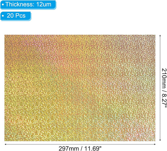 PATIKIL 11.7x8.3" Hot Stamping Foil Paper Sheet, 20 Sheets A4 Heat Transfer Hot Stamping Paper Foil for Leather DIY Logo Decor Craft Gift Package Scrapbook Card, Laser Spot Gold