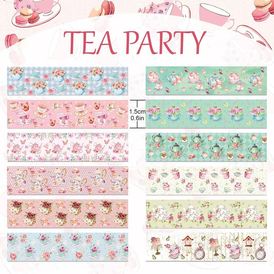 12 Rolls Tea Party Washi Tape, Afternoon Tea Decorative Tape for Scrapbooking, Bullet Journals, Planners, Party Decorations, DIY Crafts, Gift Wrapping, 16.4FT