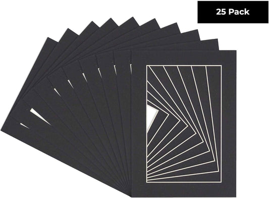 Pack of 25 Acid Free 8x10 Mats Bevel Cut for 5.5x8.5 Photos - Black Precut Matboards for Pictures, Photos, Framing - 4-ply Thickness