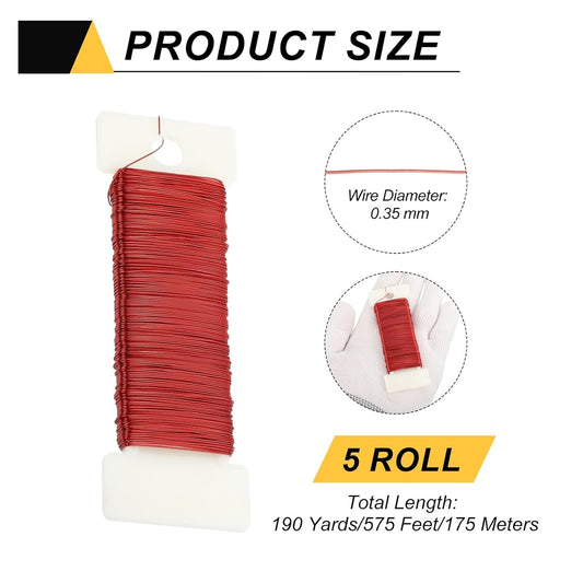 MECCANIXITY 190 Yards/575 Feet 27 Gauge Metal Floral Wire Red Flexible Paddle Thin Floral Wires for Craft, Christmas Wreath, Flower Arrangement, Wedding, Total 5 Roll