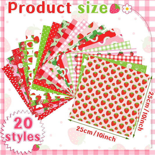 Ganeen 60 Pcs 10 x 10 Inch Strawberry Quilting Fabric Squares Multicolor Strawberry Printed Fabric Bundles Summer Fat Patchwork Precut Stripes for Summer Holiday Handmade Material Sewing DIY Crafts