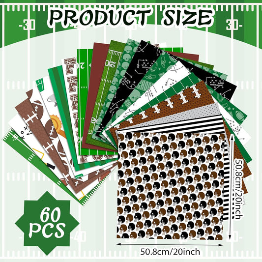 Ganeen 60 Pcs 10 x 10 Inch Football Quilting Fabric Squares Vintage Football Fat Patchwork Precut Strips Retro Green and Brown Fabric Bundles for Holiday DIY Craft Sewing Quilt Material Handmade