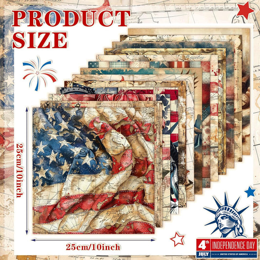 Ganeen 60 Pcs 10 x 10 Inch Vintage Patriotic Quilting Fabric Squares American Flag Fabric Bundle Retro 4th of July Fat Patchwork Precut Stripes for Memorial Day Handmade Material Sewing DIY Crafts