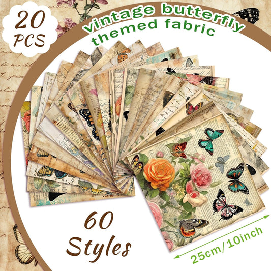 Ganeen 60 Pcs 10 x 10 Inch Vintage Butterfly Quilting Fabric Squares Summer Butterfly Fabric Bundle Retro Fat Patchwork Precut Stripes for Handmade Material Sewing DIY Crafts